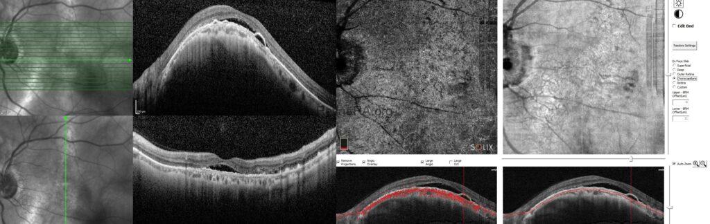 To rule-out the accompanying macular neovascularization, OCT-A was performed and any neovascular membrane could not detected.