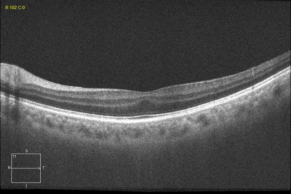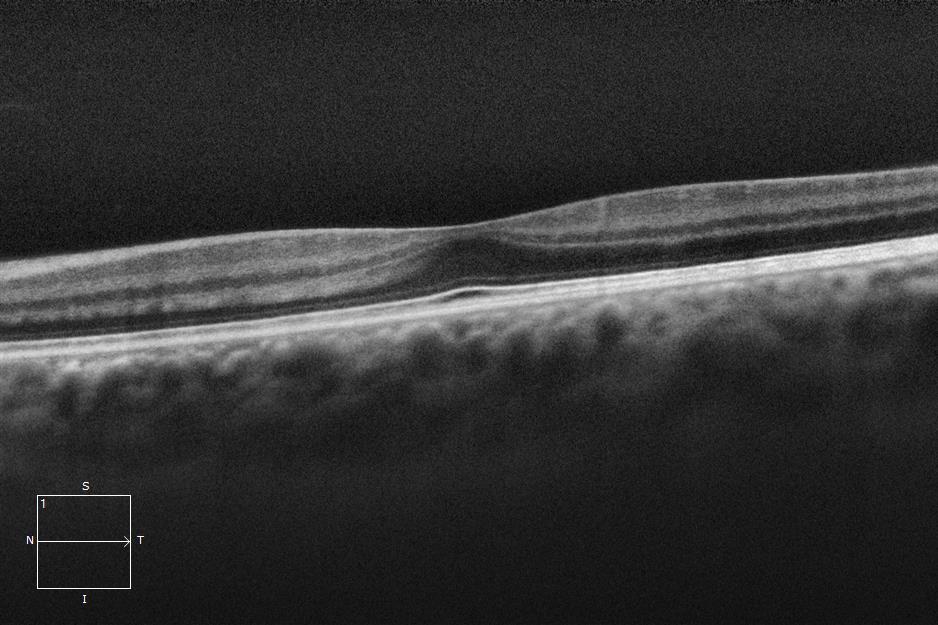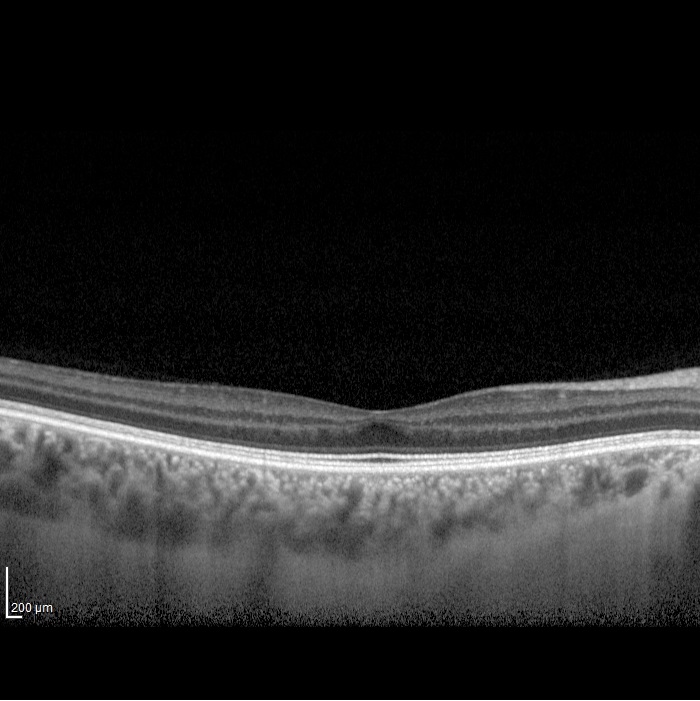 In contrast to other definitions, Thomas et al. defined foveal hypoplasia as the persistence of inner retinal layers in the fovea and developed a grading system based on optical coherence tomography features. According to this grading system, grades 2, 3, and 4 of foveal hypoplasia corresponded to the fovea plana.
