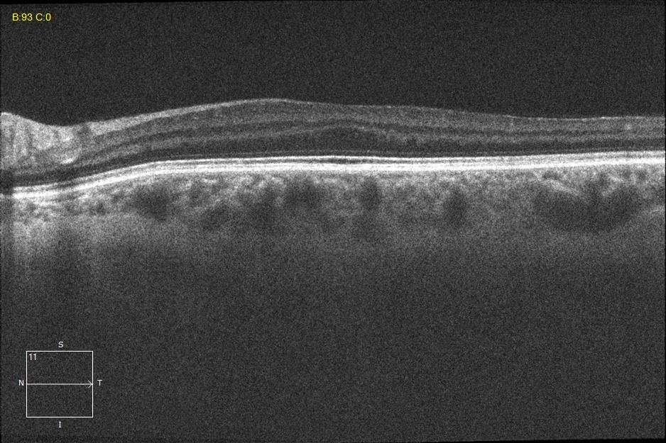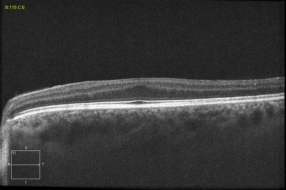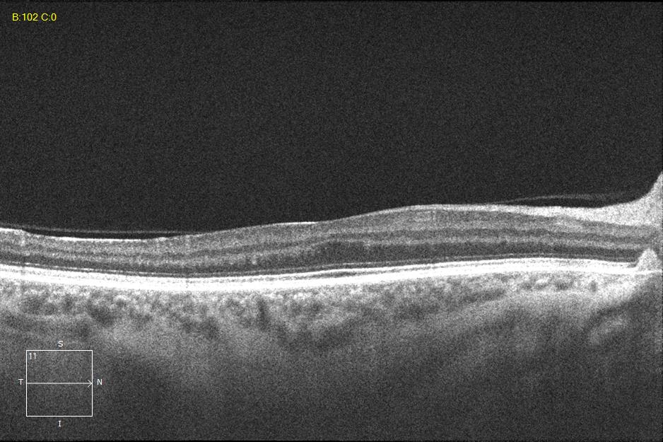 Grade 3 foveal hypoplasia represents all the features of grade 2 except that there is no lengthening of the OS segment.