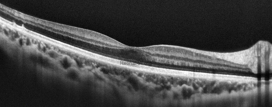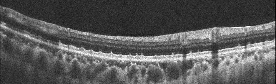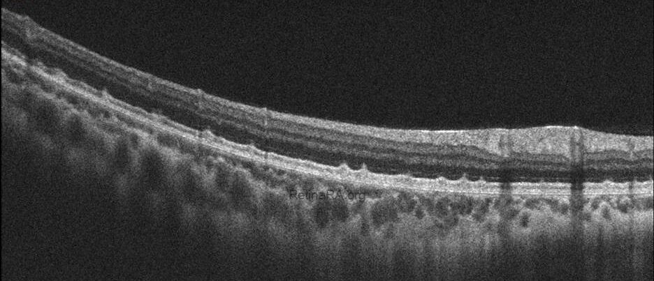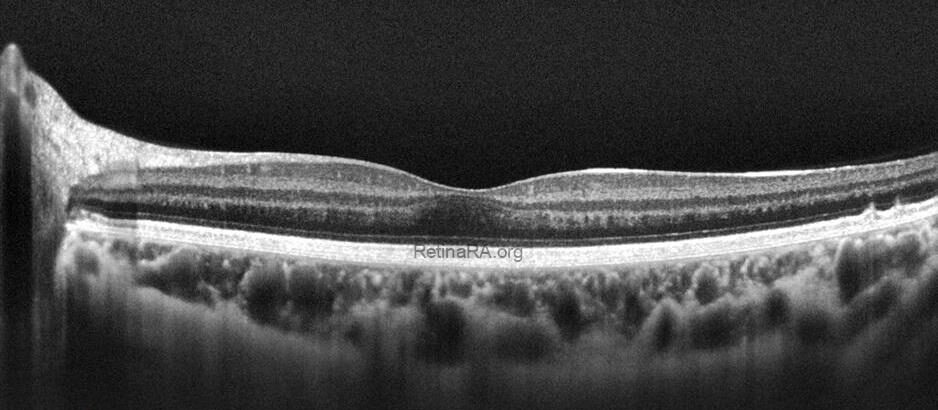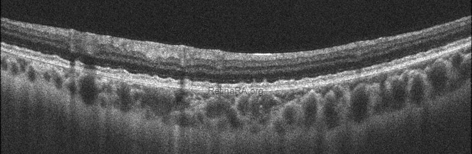 Optical coherence tomography (OCT) provides valuable structural information in fundus albipunctatus. OCT imaging typically demonstrates focal hyperreflective material originating from the RPE and projecting into the outer retinal layers, correlating with the punctate lesions seen on fundus examination. On fundus autofluorescence imaging, a diffusely reduced background autofluorescence is commonly observed, reflecting impaired retinoid metabolism and RPE dysfunction related to disruption of the visual cycle.