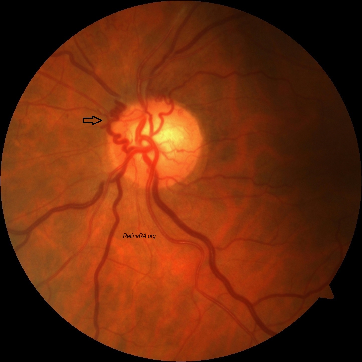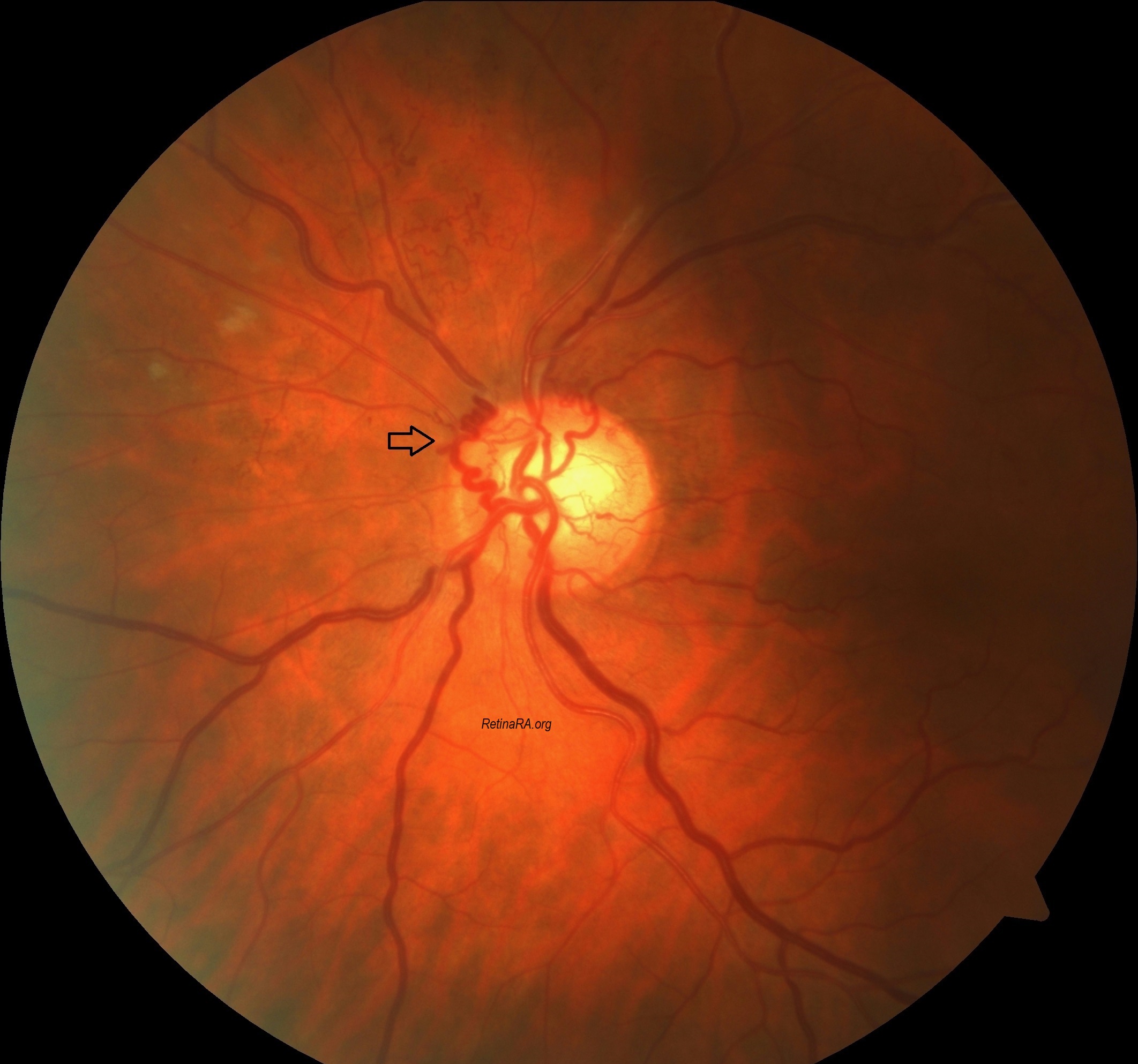 The clinical approach must include a complete ophthalmic history, especially regarding prievious CRVO, because this the most common association. Fundus examination may reveal some obvious etiologies, such as signs of CRVO, optic disc drusen, or a cupped optic nerve suggestive of glaucoma. Otherwise, ophthalmologists must investigate the causes of chronic compression of the optic nerve, such as optic nerve sheath meningioma or conditions with intracranial hypertension. In patients with papilledema, optociliary vessels might help discern the chronicity of the condition, as they emerge only in the setting of chronic papilledema.
