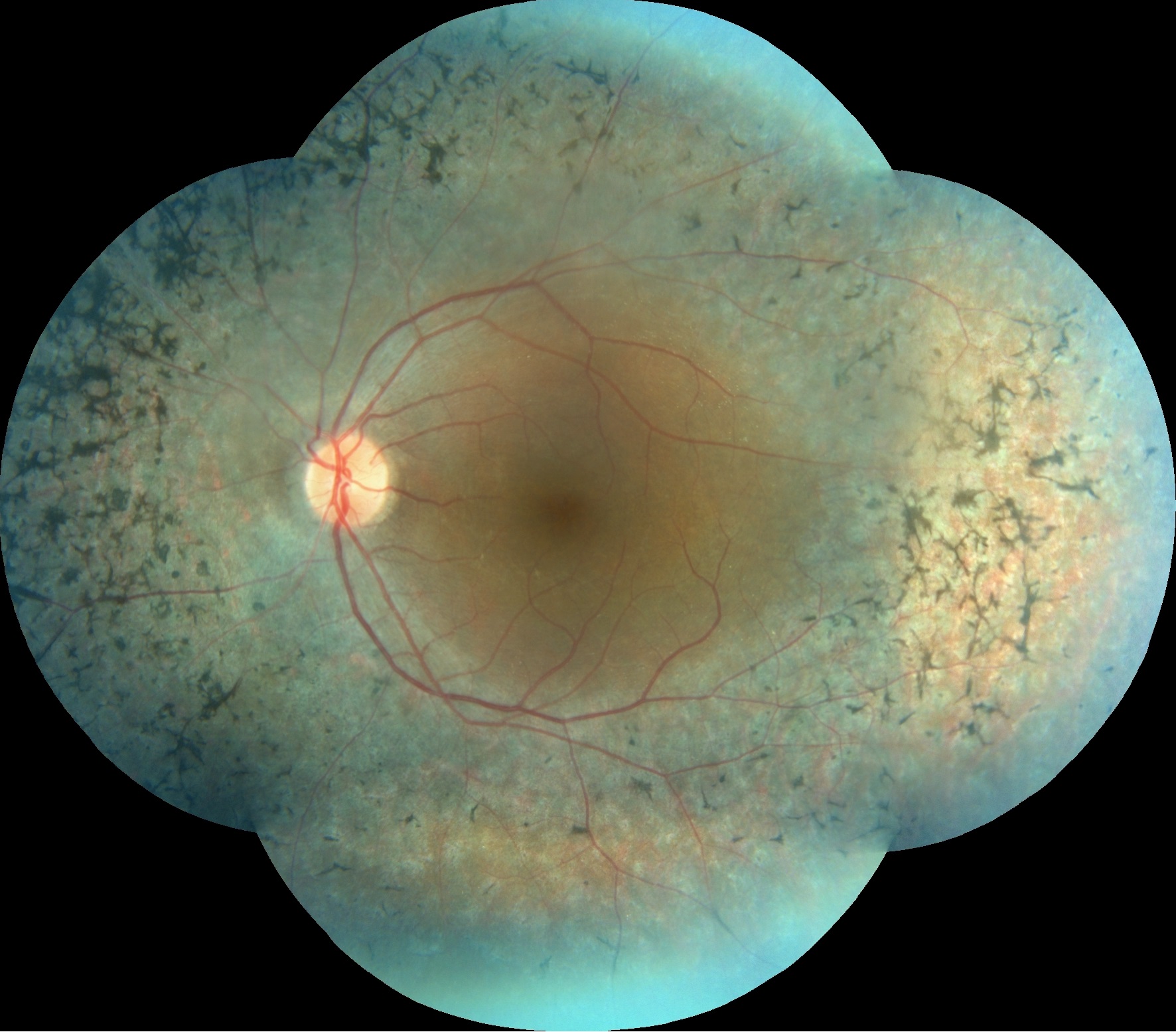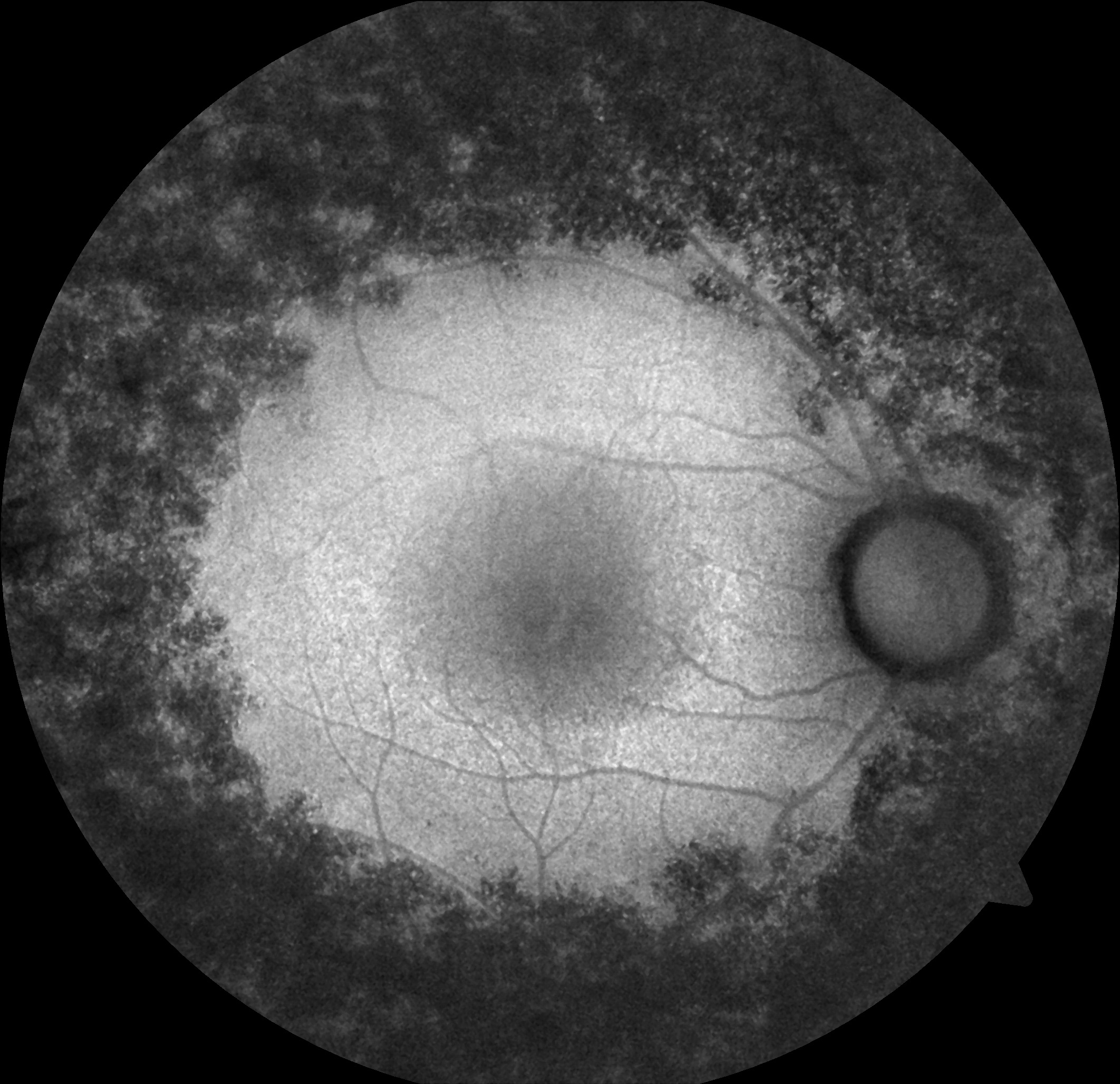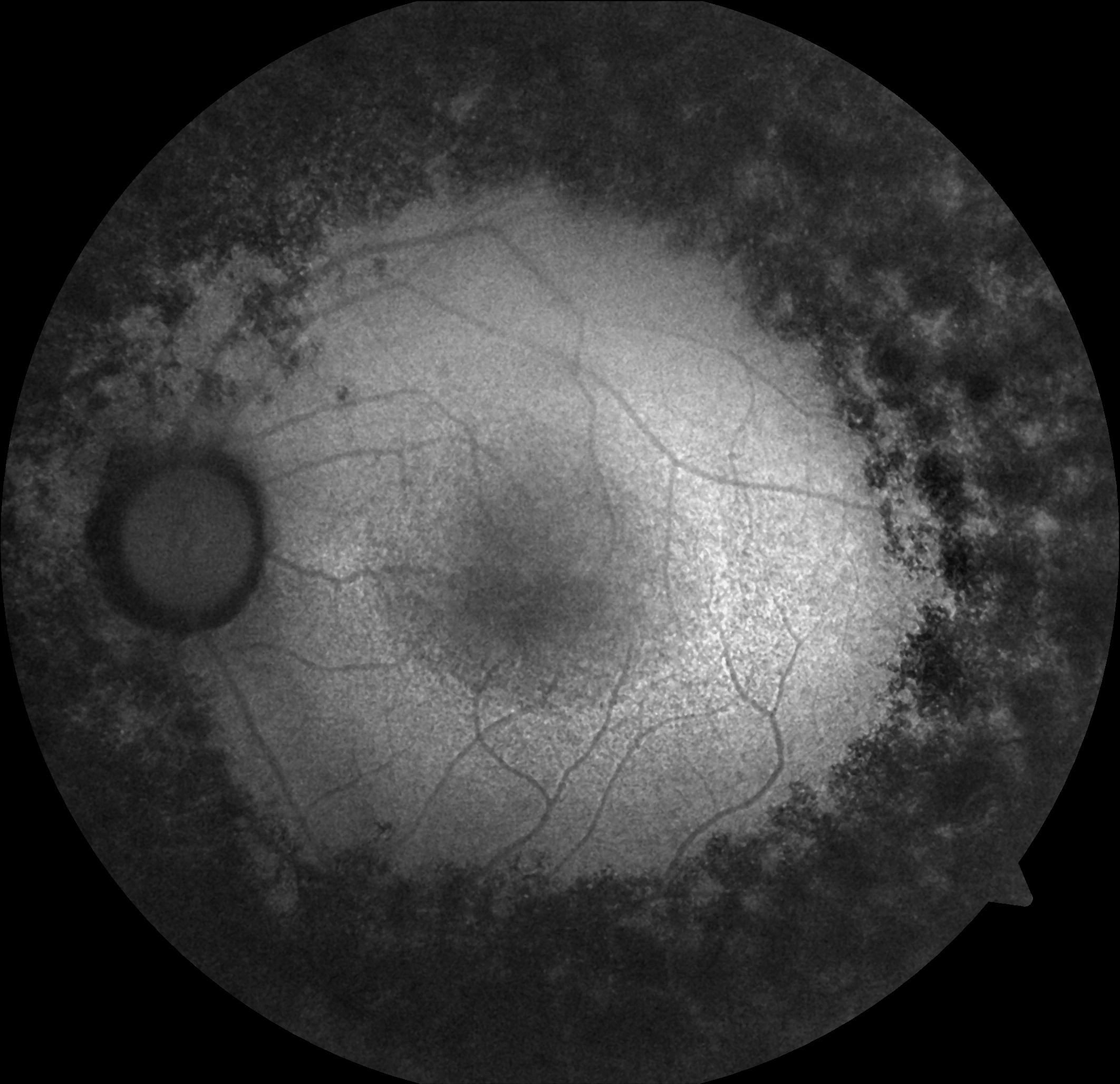 A 26-year-old female patient with cystoid macular edema (CME) secondary to retinitis pigmentosa (RP). Pretreatment OCTs show CME bilaterally. After one month of topical Brinzolamide treatment, visual acuity improved from 20/50 to 20/30 and CME resolved bilaterally.